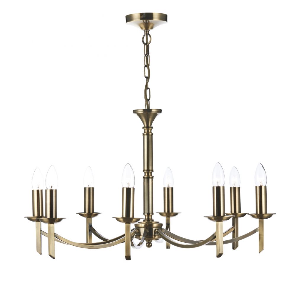 The AMBASSADOR 8lt Pendant is finished in antique brass and has a feature ribbed central column.