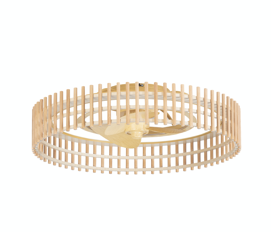 The Bambu ceiling fan from LEDS C4 Forlight is ideal for a smaller space and lower ceiling height, finished in a bamboo effect with an LED light source , new for 2023 it comes with a remote control IP44 rated and free mainland UK delivery