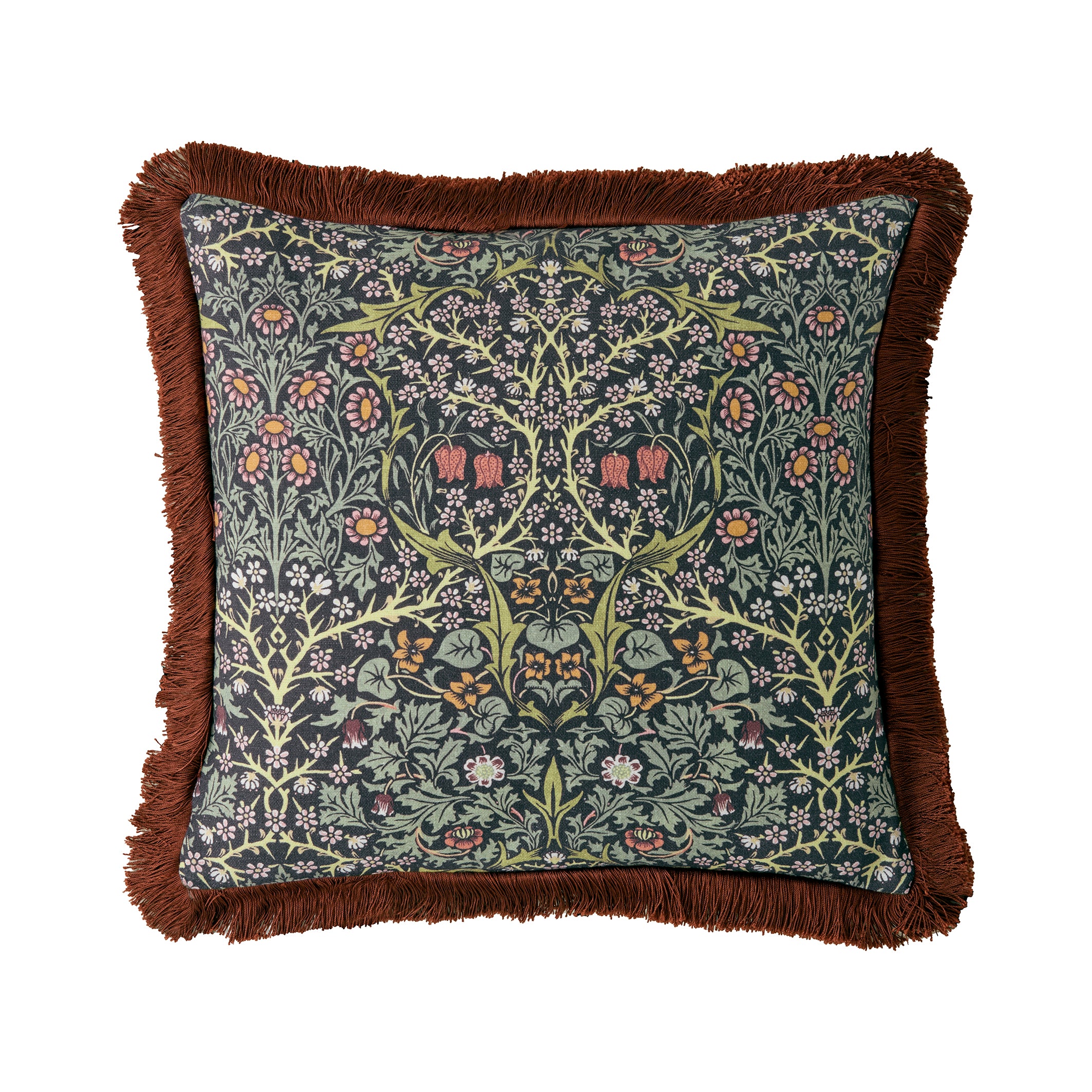The William Morris At Home Blackthorn cushion is 50 cm x 50cm  This intricate pattern features white...