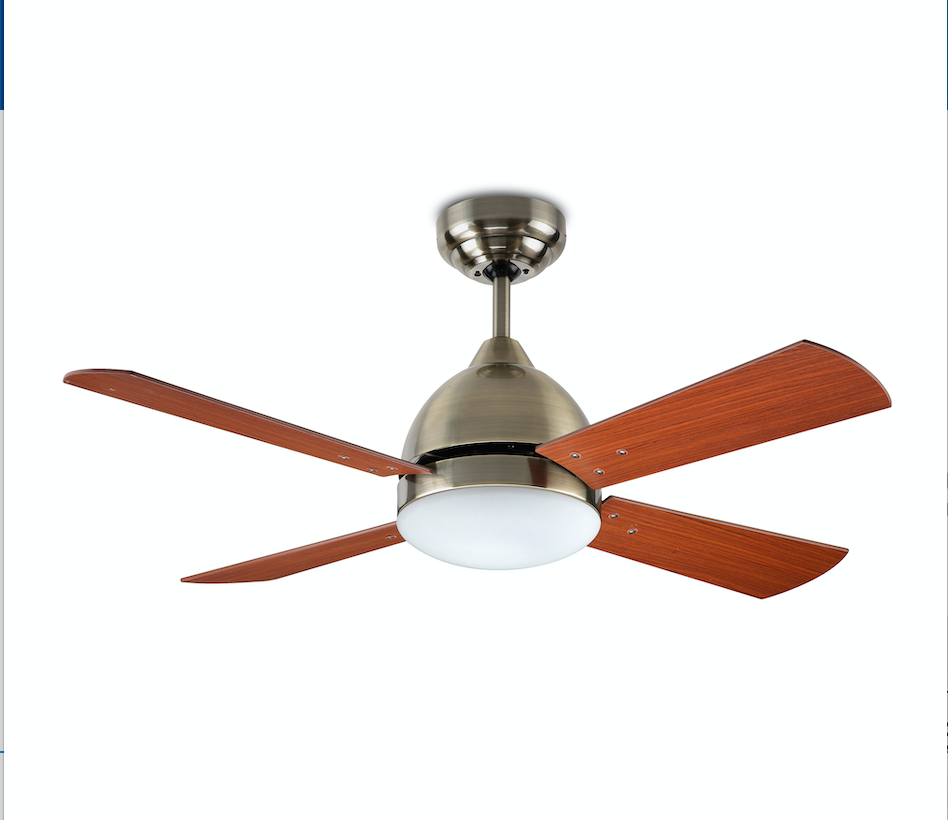 The Borneo in a Patina Teak finish from LEDS C4 Forlight is a modern fan with a number of colours available, the glass opal diffuser making it ideal as a room light along with the reverse blade function allowing all year round use.