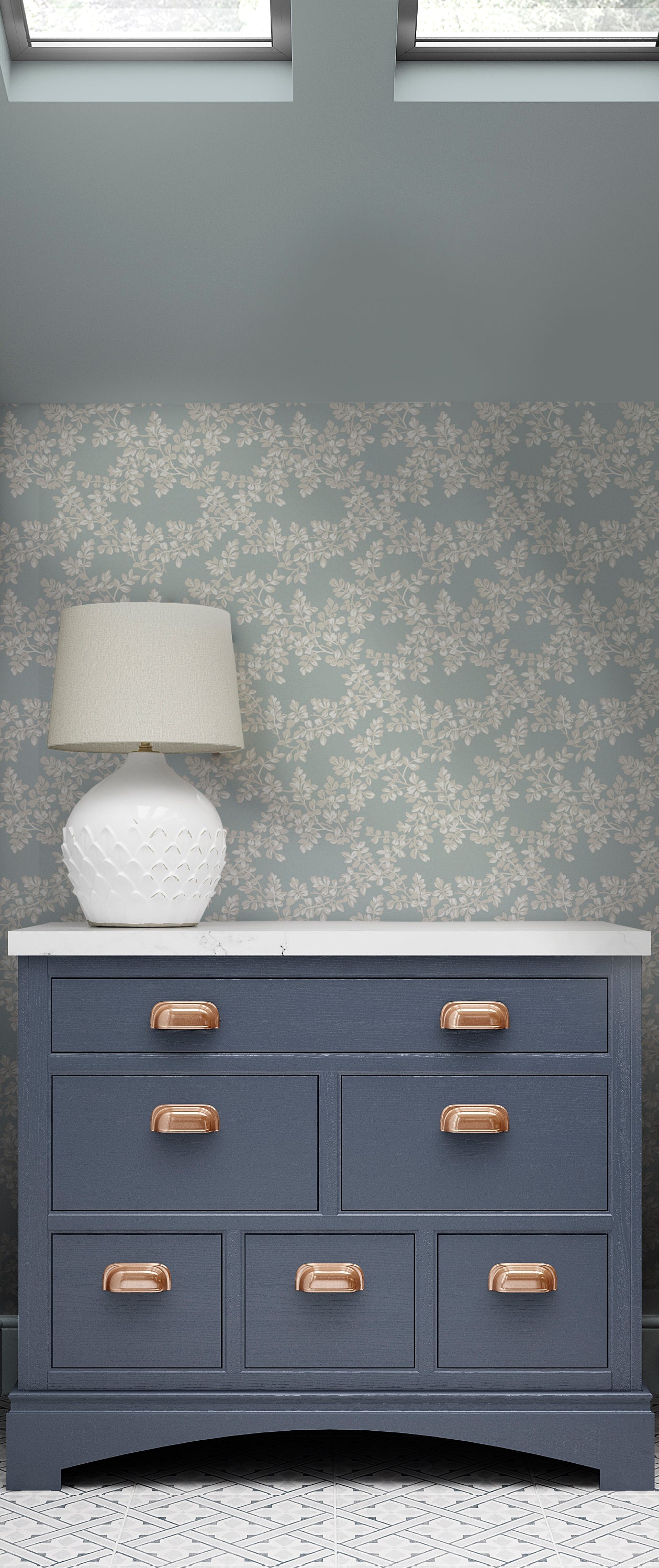 Burnham is a beautiful leaf trellis design with delicately intertwined curving leaf stems, inspired by an original painted artwork piece from the Laura Ashley archive, this intricate design has a charming country feel.