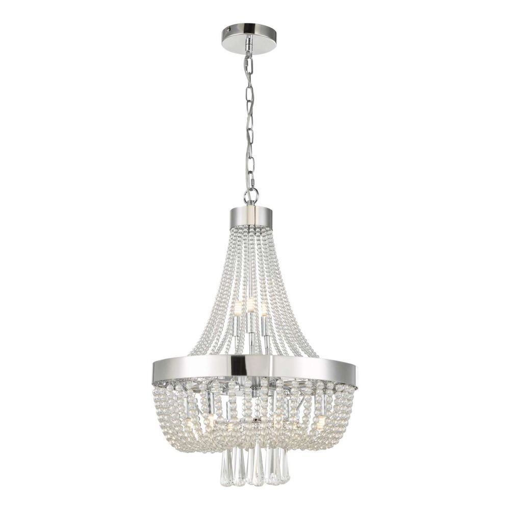 The Alyssa 9 light crystal chandelier is festooned with crystal glass beads around a lavish arrangement of central glass drops. A beautiful decorative piece perfect for adding glamour to most rooms. The Alyssa crystal chandelier comes with 1m of hanging chain which can easily be shortened on installation. If you like this look and height is a problem, try our Saigon 5 light flush ceiling light which has the same styling but suited to low ceilings.