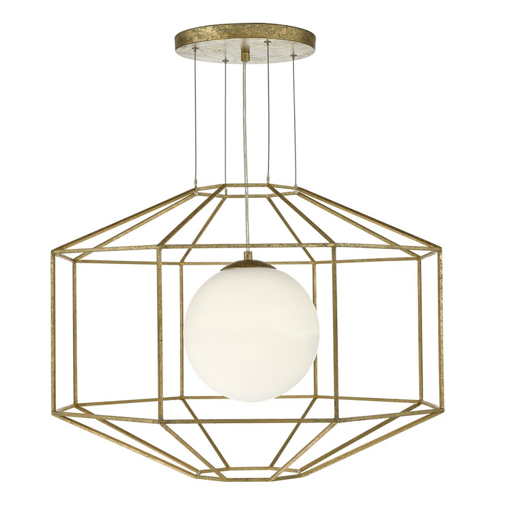 By Dar Lighting IZMIR has a sophisticated mid centuary feel with an elegant old gold frame and matching ceiling plate encasing a soft white opal globe. supplied with a meter of wire and 1 x E27 lamp holder suitable for LED lamps. This fitting looks equally graceful close to the ceiling or on a longer suspension.
