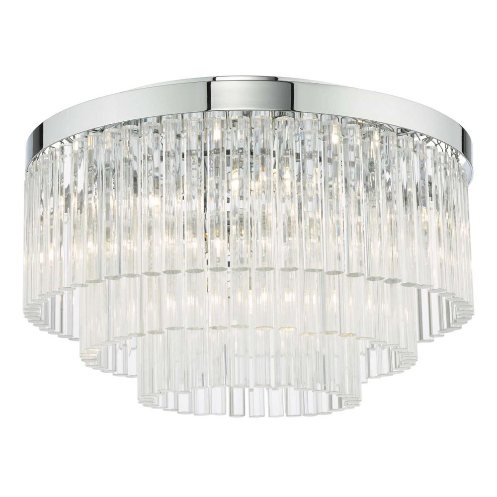 The Logan 5 light semi-flush ceiling light in polished chrome is comprised of three tiers of clear crystal to give a modern take on the usual tiered chandelier. Compatible with our G9 halogen or LED lamps, sold separately. Also available with clear glass, and has a matching sister pendant called the Giovana.
