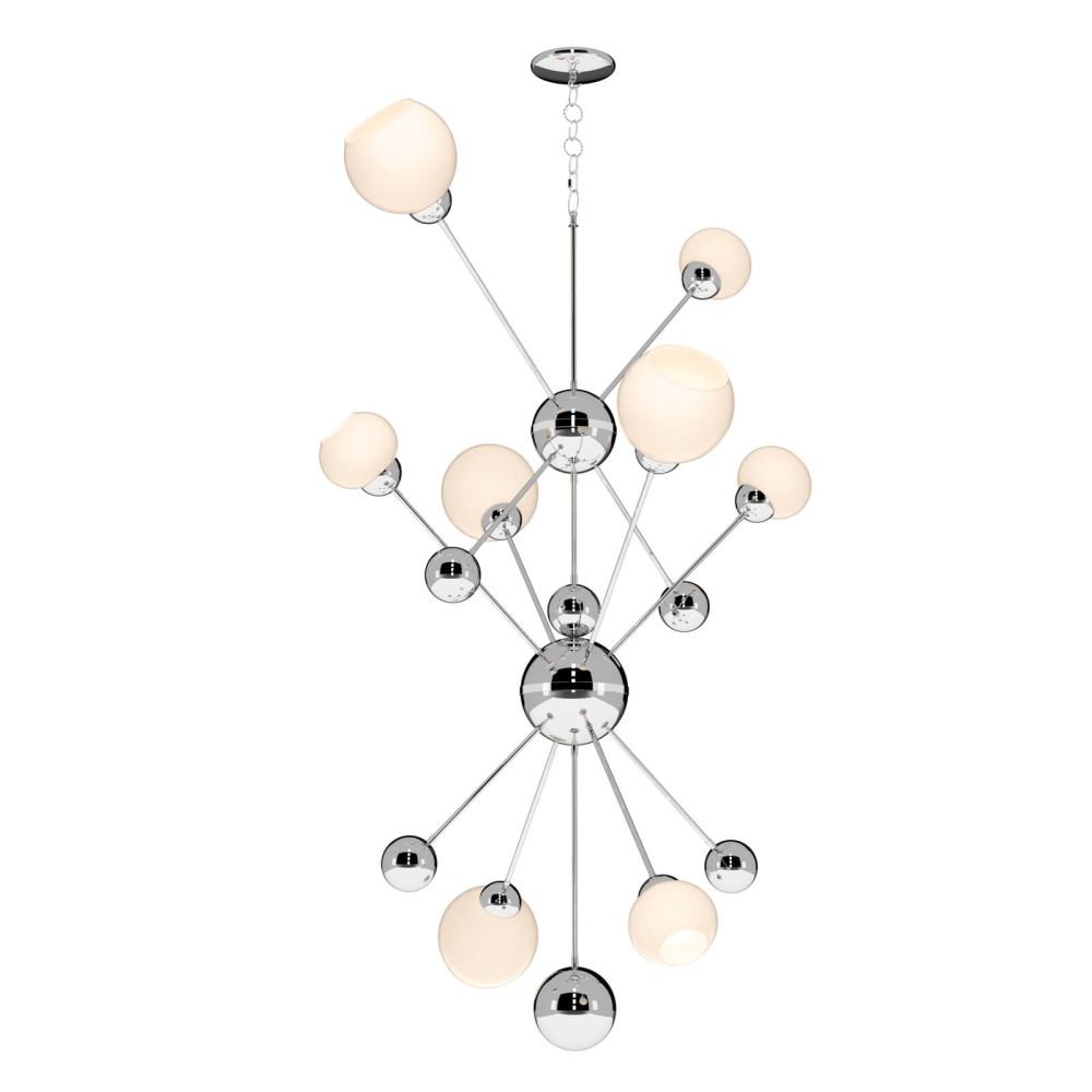 How about the David Hunt Lighting Cosmos Pendant Chrome COS0850 light fixture? This a massive statement chandelier for any funky space, residential or commercial it would look perfect in a double height atrium or hallway, the simplicity of its overall form is truly beautiful and striking. Finished in a polished Chrome