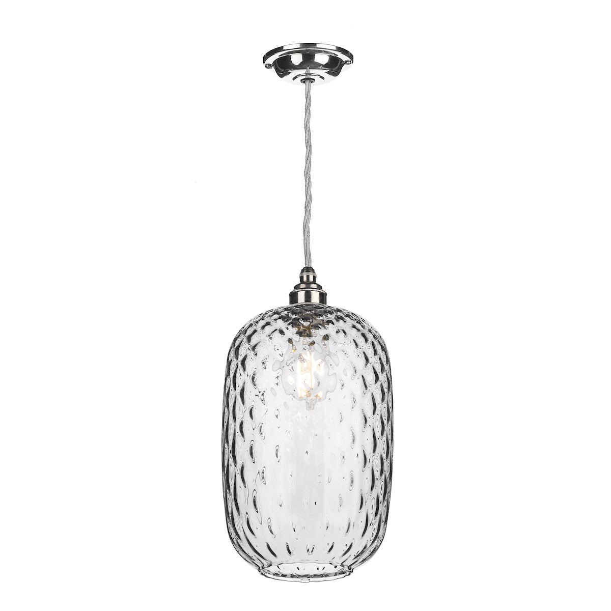 The Duxford pendant from David Hunt Lighting matched with the gorgeous dimpled clear glass shade, in two sizes, both with a choice of glass, The bell shape works in both modern and traditional interiors. Use vintage globe bulbs to add to the look.