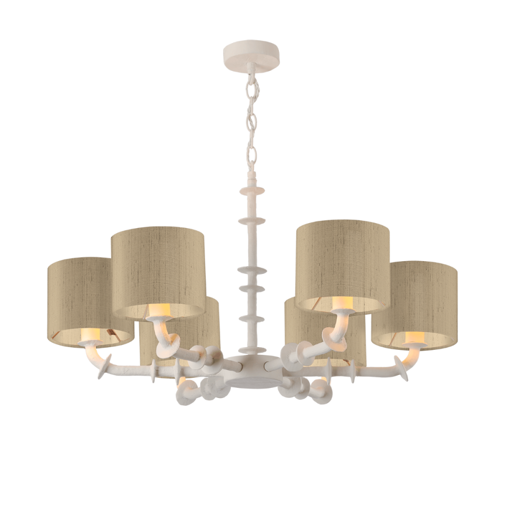The 6 light is a stylish addition to any room, the shades that are supplied can be customised to your colour scheme using the range of bespoke fabric shades available, a colour swatch card can be ordered from the showroom to help choose the right fabric.