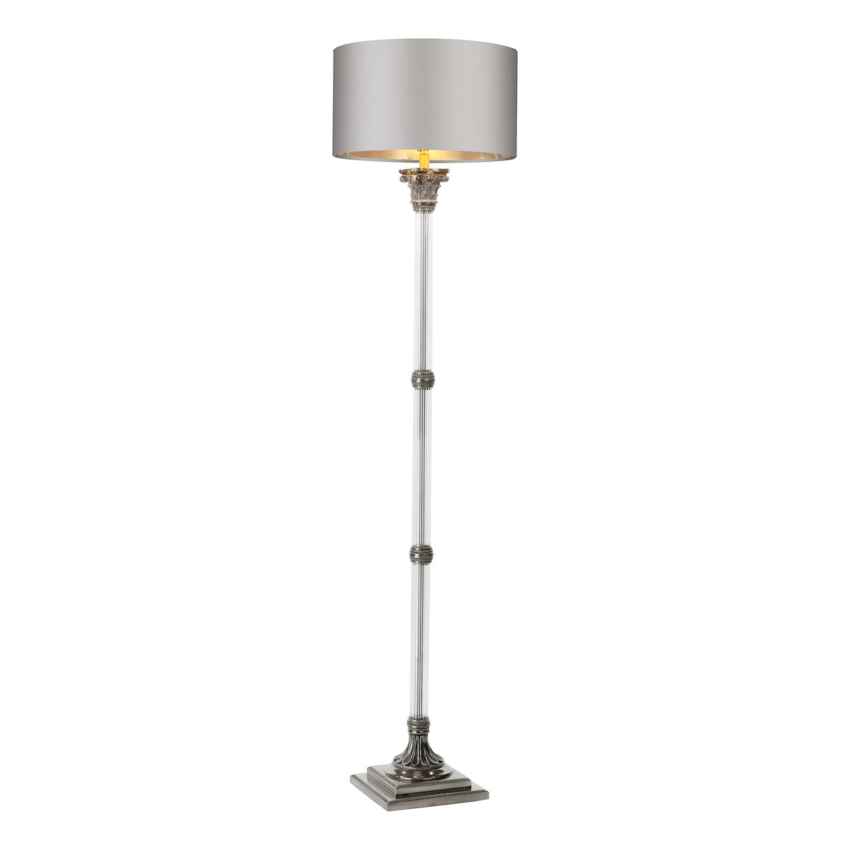 This is the floor lamp the Imperial collection from David Hunt Lighting with a pewter metal finish and a clear glass ribbed column in a classic design. The base is sold as a base only, giving you the flexibility of choosing a shade that suits you room and overall look. The Image shows the lamp with a 40 cm diam shade.