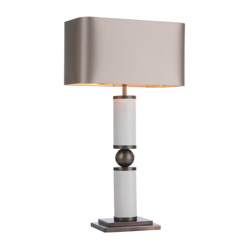 Pallas table lamp is a paradox of shape and texture. Mixing together solid Antique Brass and Jesmonite has created a unique lamp which embodies the strength of its namesake the Titan god Pallas. Shade sold separately. Shown with ZOF12