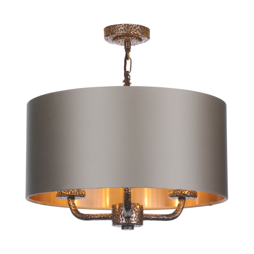 The bestselling Sloane collection features organic hammered hand casted resin detailing available in either a rich bronze or cool pewter finishes. The 3 light pendant is with supplied complete with oversized drum shade, available in your choice of many luxurious fabrics.