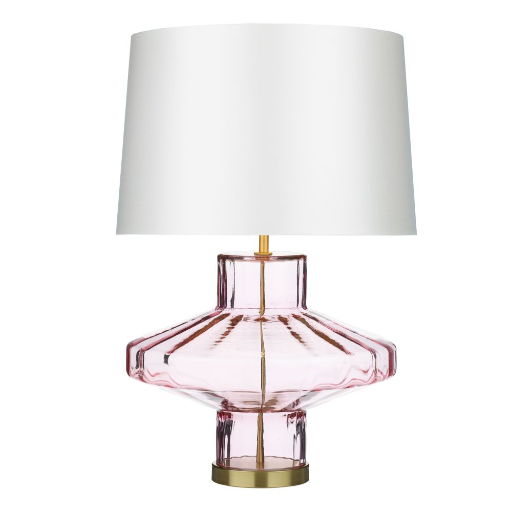 The Vienna table lamp is ideal for many spaces the pink glass adds a splash of colour and the base itself will make an impact as its quite large, we suggest using a 40cm shade with this base.
