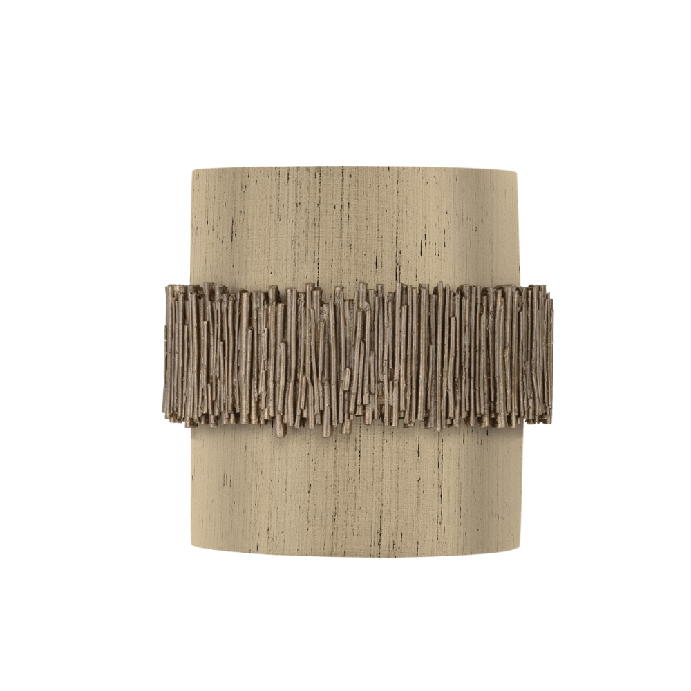 The shaded Willow wall light is the latest addition to our best selling Willow collection. This range is inspired by the traditional willow reeds made to weave baskets and crafts. We want to honour this wonderful material by creating a lighting collection that celebrates the versatility of Willow. Hand painted in our Gold Cocoa finish and available with bespoke shades from one of our thoughtful collection of fabrics.