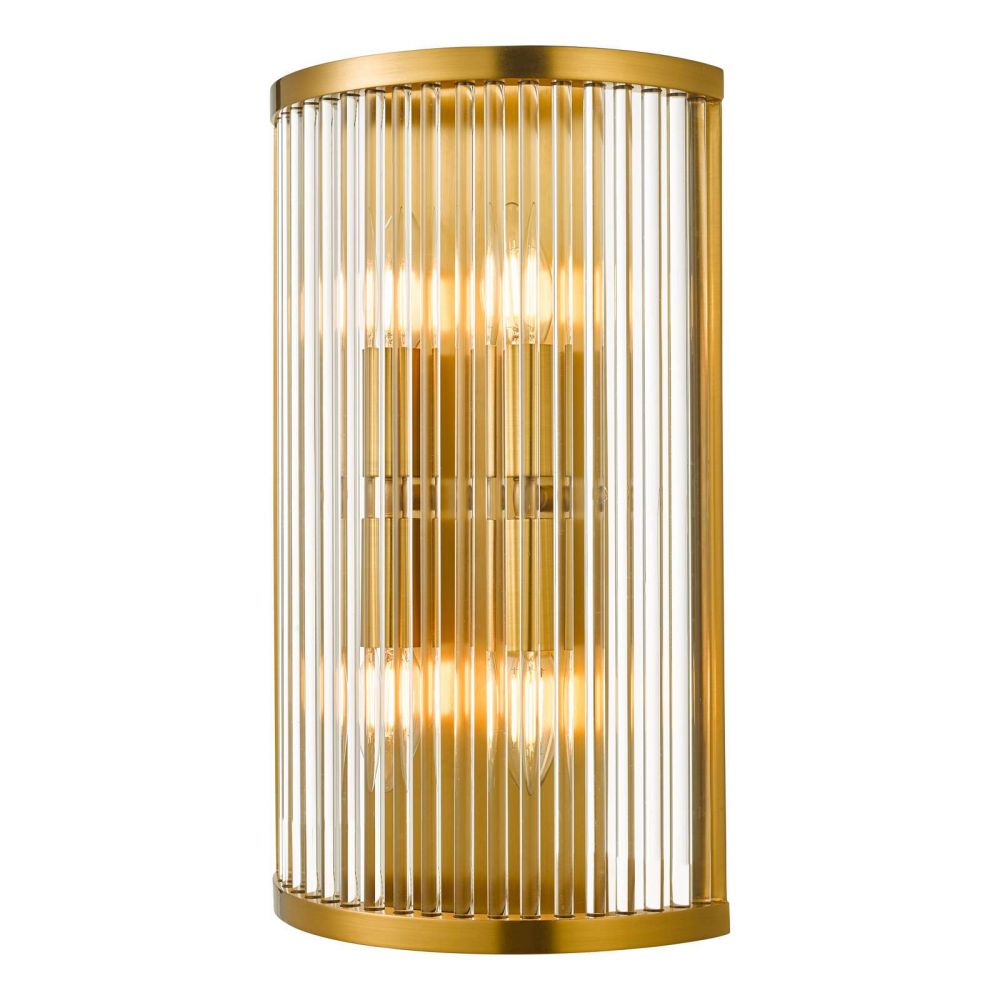 The Eleanor statement wall light with aged brass frame and thick glass rods give a slight industrial feel to this glamorous chandelier. The grand proportions of this wall light make it suitable for use in great hall ways, staircases or even in a boutique style bedroom. It was design to complement the 3 tier chandelier for perfect for carrying the scheme across rooms or up a staircase.