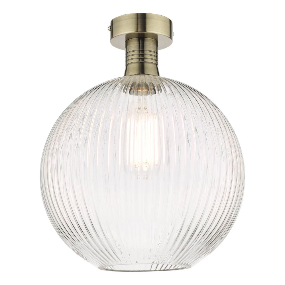 The Emerson flush ceiling light is a perfect example of the refined industrial style, inspired by industrial lighting using a rich pallet of materials and finishes. Featuring a wonderfully heavy machined lamp holder with an antique brass finish. Finished with a round ribbed glass shade.