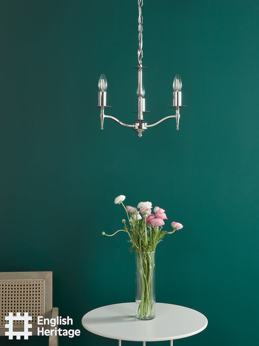 Part of the English Heritage lighting collection, inspired by Great British houses and gardens. Marble Hill 3 Light Pendant in Polished Nickel is an exercise in Georgian proportions inspired by Marble Hill itself.
