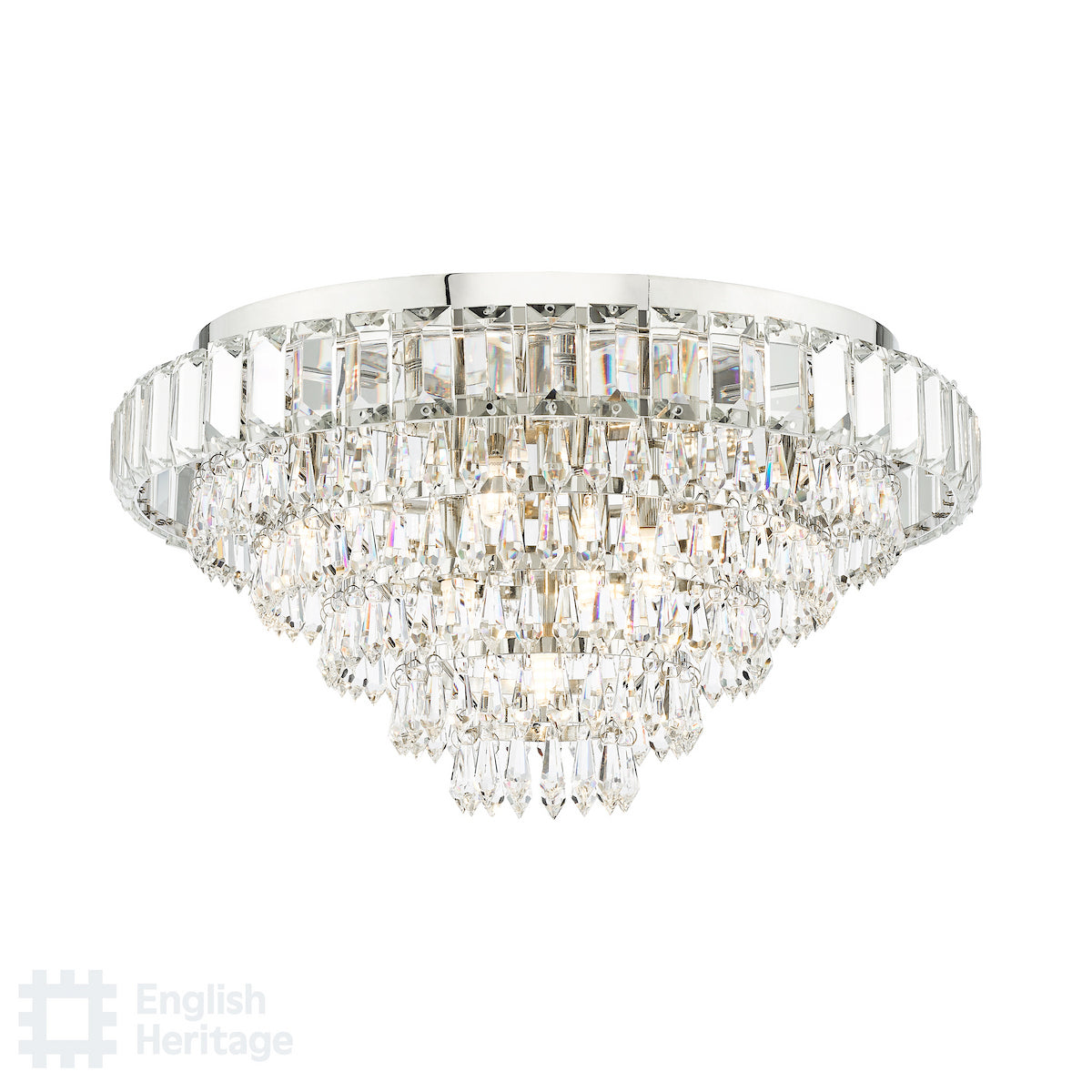 The Elegant Osborne 7-Light Crystal Ceiling Light is inspired by the grand chandeliers in the drawing room of Osborne, Queen Victoria, and Prince Albert’s beloved seaside home.