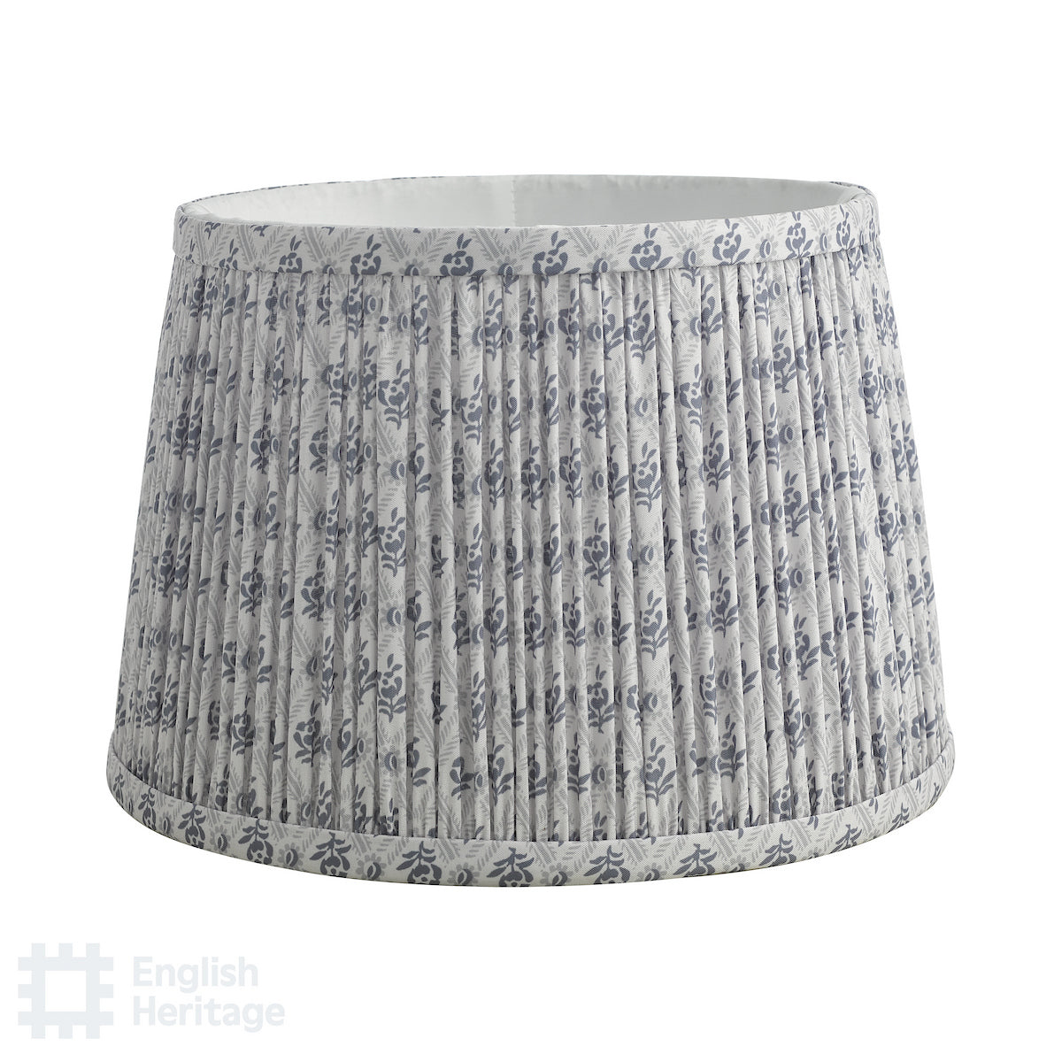 A collection of soft pleated lamp shades taking inspiration directly from a fragment of wallpaper found on the walls of 80 St John Street, Clerkenwell, the grey trellis pattern frames varying floral motifs in a block-style print.