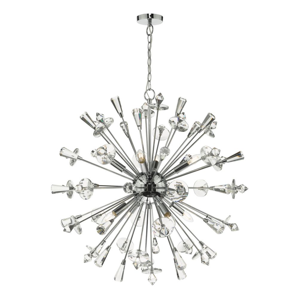 The Exodus 8 light pendant ceiling light in polished nickel and high quality crystal. 1m of chain and clear cable is included which can be adjusted on installation depending on how low your ceiling is or how high you’d like to hang the ceiling light. Crystal appears to explode from the centre of this incredible statement light