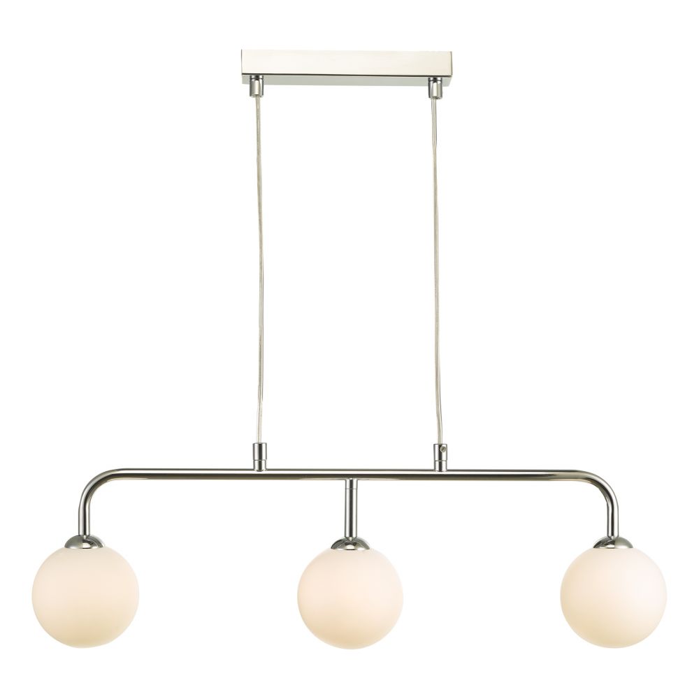 The FEYA Bar Pendant Light in polished chrome and opal glass. With 1m of clear cable which can be shortened on installation the Feya bar pendant ceiling light can suit both high or low ceilings. The flexible cable makes it suitable for sloped ceilings such as in extensions.