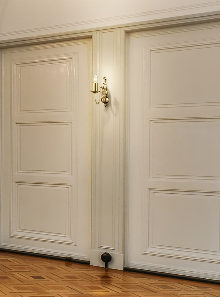 Delft 1Lt Bracket. In polished brass part of the wider collection of fittings to mix and match with larger spaces where required.