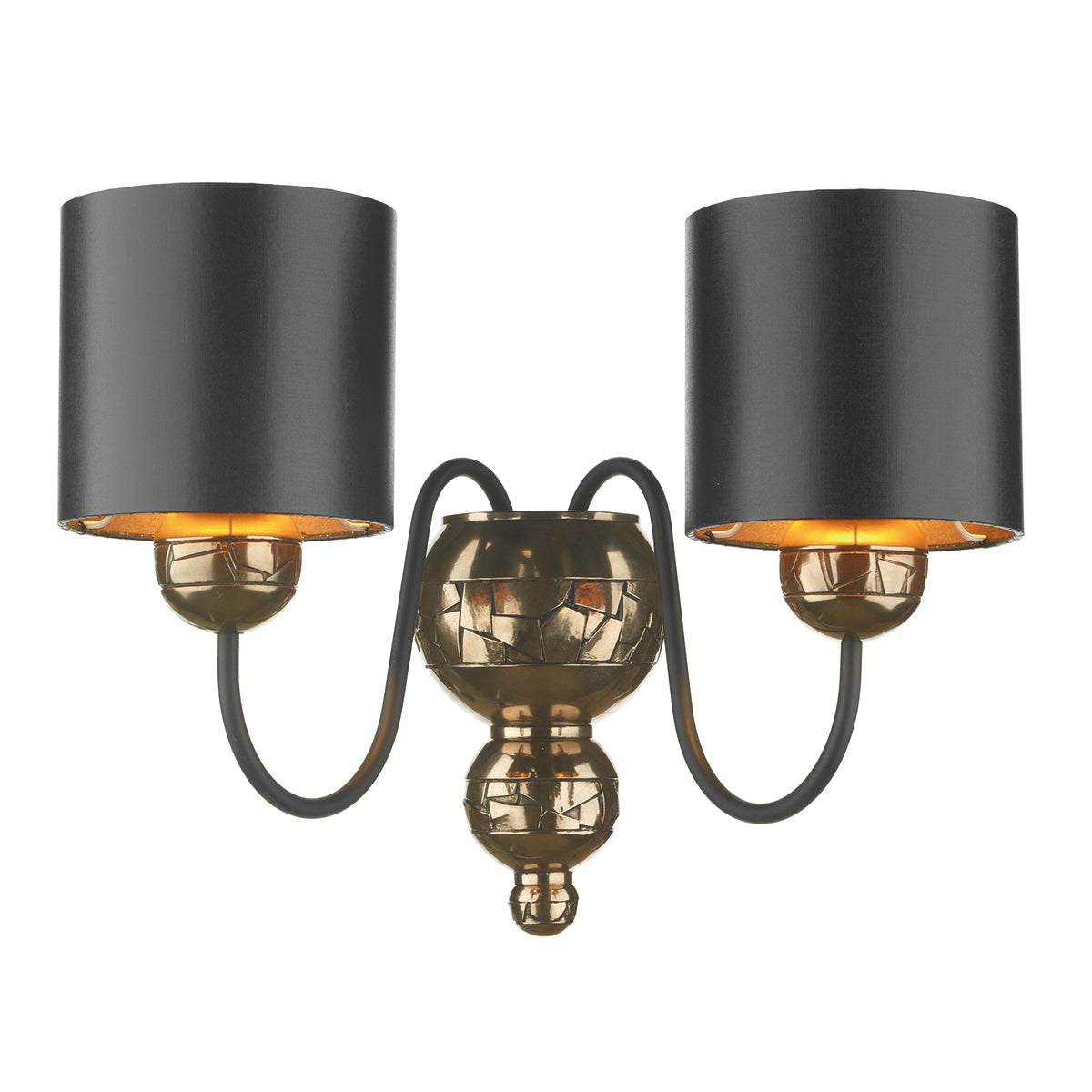 Finished with a polished bronze faceted components and black metalwork, it comes complete with black card shades.