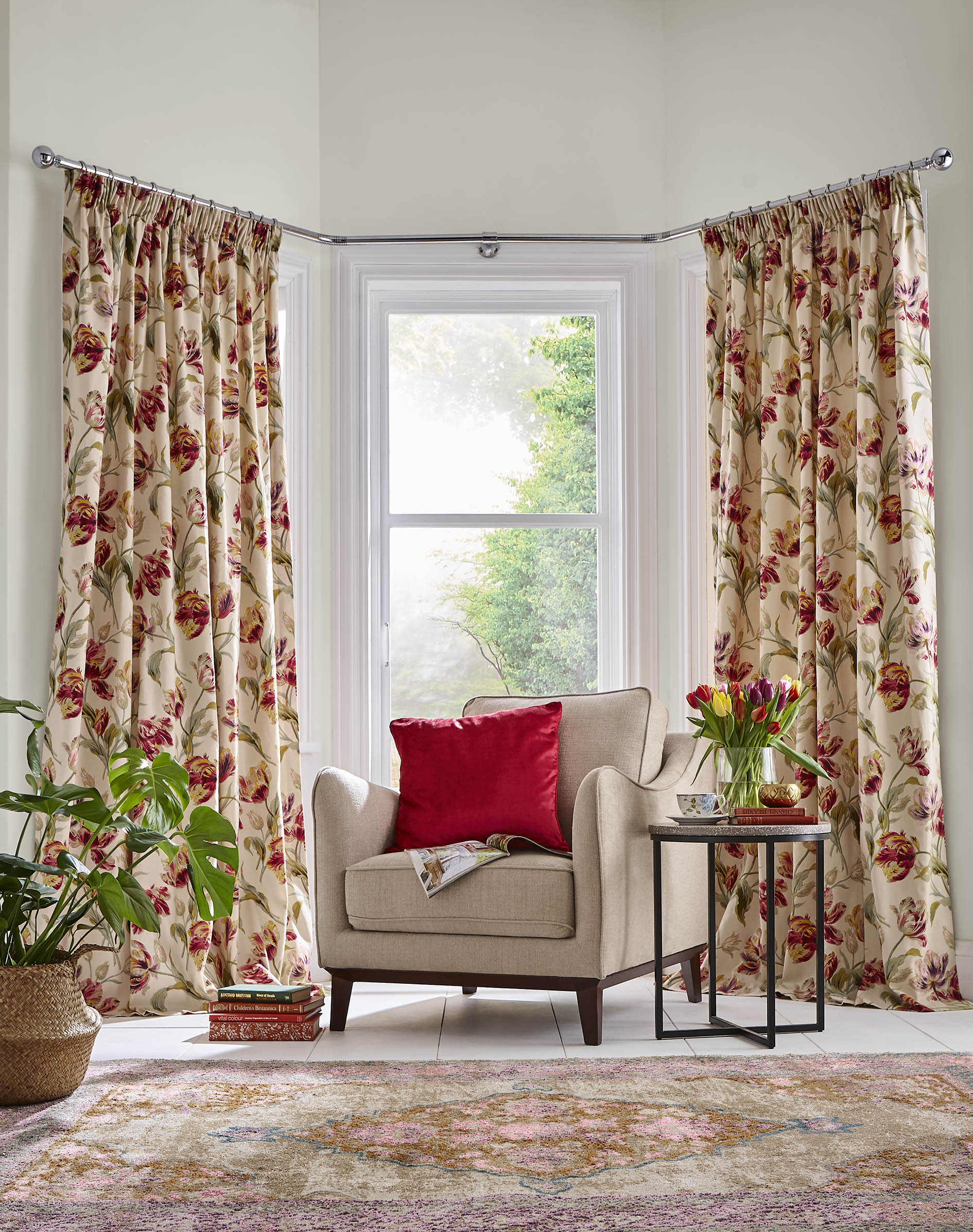 With rich cranberry blooms, this classic Laura Ashley floral design is printed onto 100% cotton and will set off your window in style. Available in a range of sizes, fully lined and with a pencil pleat header. Matching Tie Backs Available Separately.