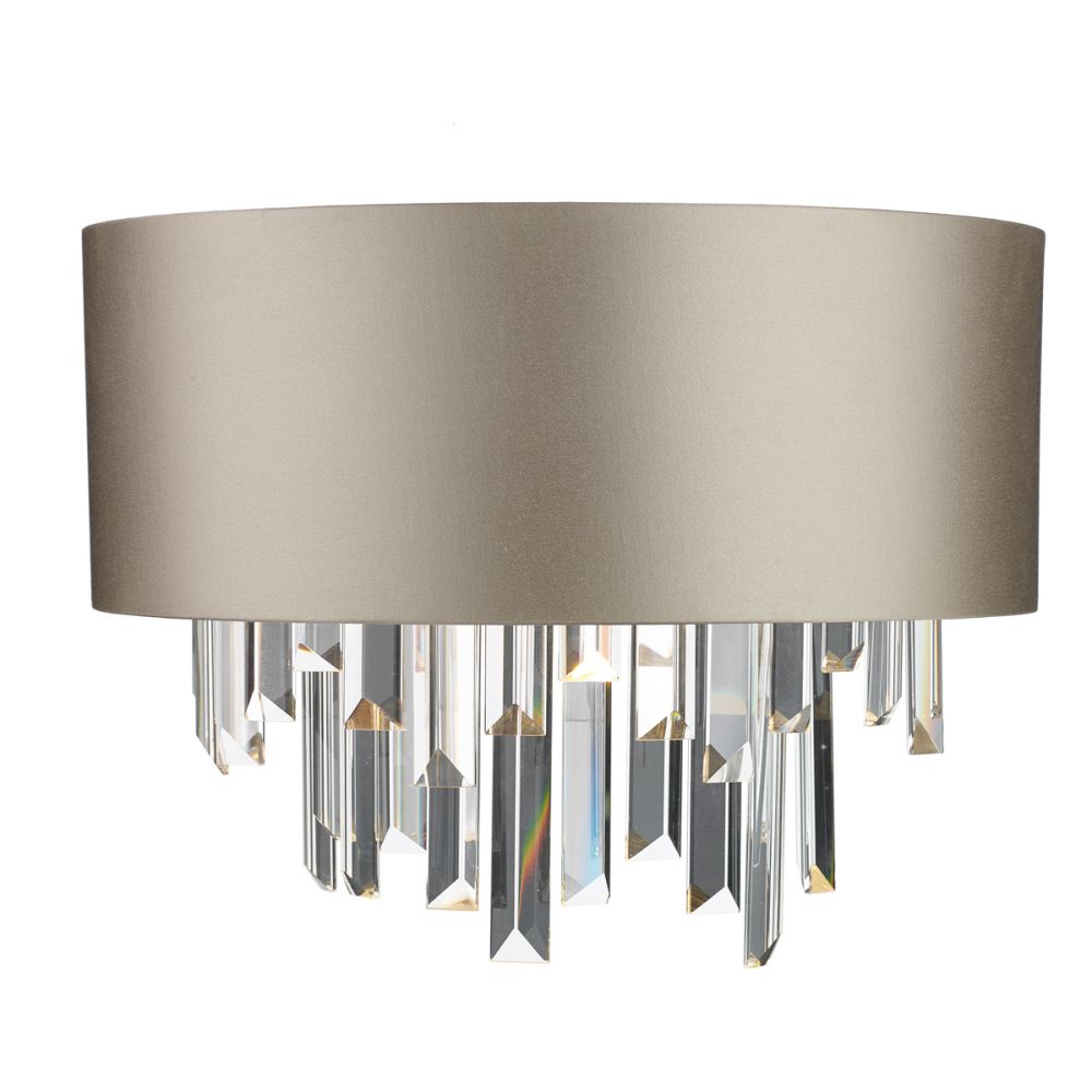 The Hurley wall light features bevelled crystals, hanging in concertina formation from beneath a customisable shade. This statement fitting is so versatile that it looks glorious any room. match it with the ceiling lights in the range .