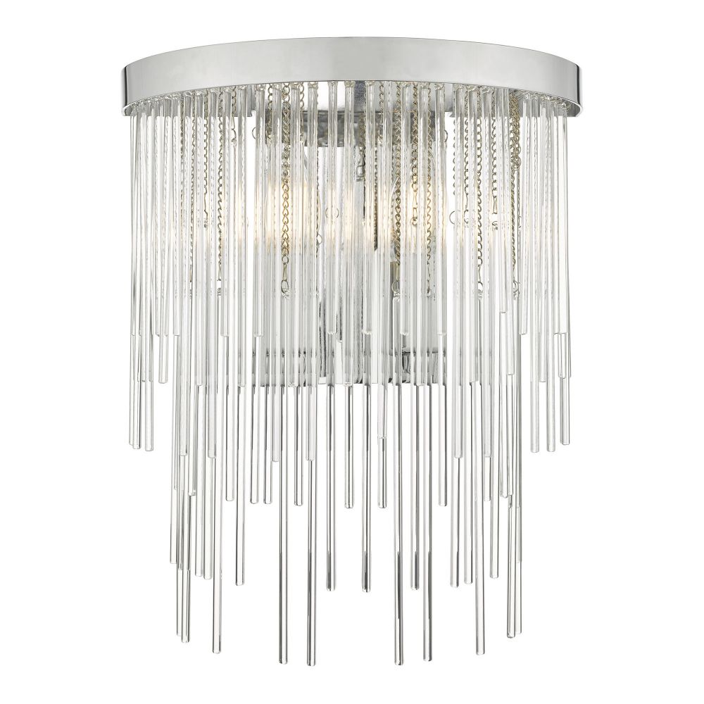 The Isla 2 Light Wall Light ISL0950 is a decorative wall light in a polished chrome finish with hundreds of dangling clear glass rods designed to look captivating as it casts its spectacular light. Matching 7 light pendant available