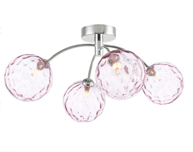The Izzy 4 light semi flush ceiling light in polished chrome and twisted glass. The polished chrome metal work and twisted blown glass add a premium feel to this semi flush ceiling light.