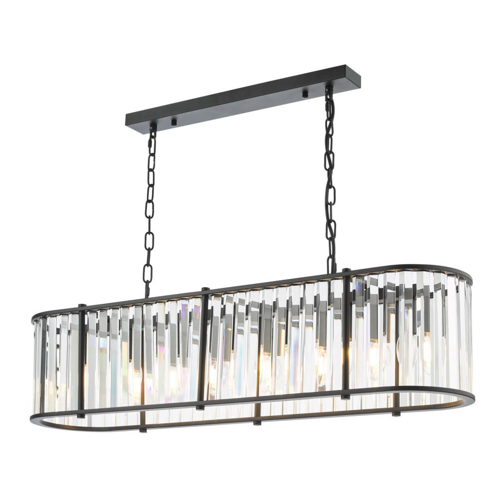 The Kiran 7 Light Bar Pendant, a stunning lighting fixture that blends modern aesthetics with classic elegance. This bar pendant features a Satin Black finish, which adds a touch of sophistication, while the faceted glass not only enhance the overall design but also creates a captivating light display when the pendant is illuminated. With seven lights arranged in a linear formation, this bar pendant provides ample illumination for large dining tables or kitchen islands.