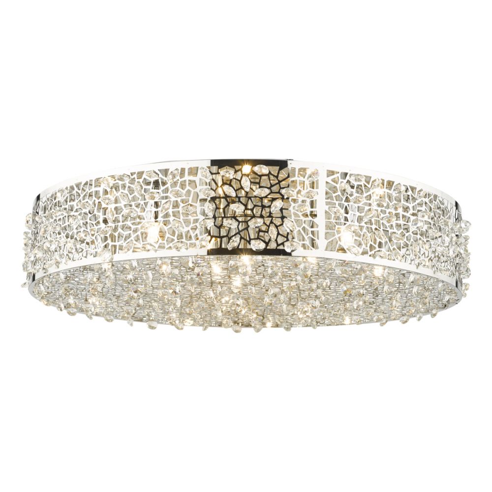A striking flush fitting with faceted crystal beads housed inside a laser cut stainless steel frame which is finished in polished chrome. The fitting is ideal for those with a low ceiling at only 13 cm, yet the width is 53 cm so it will still make an impact, and its double insulated.