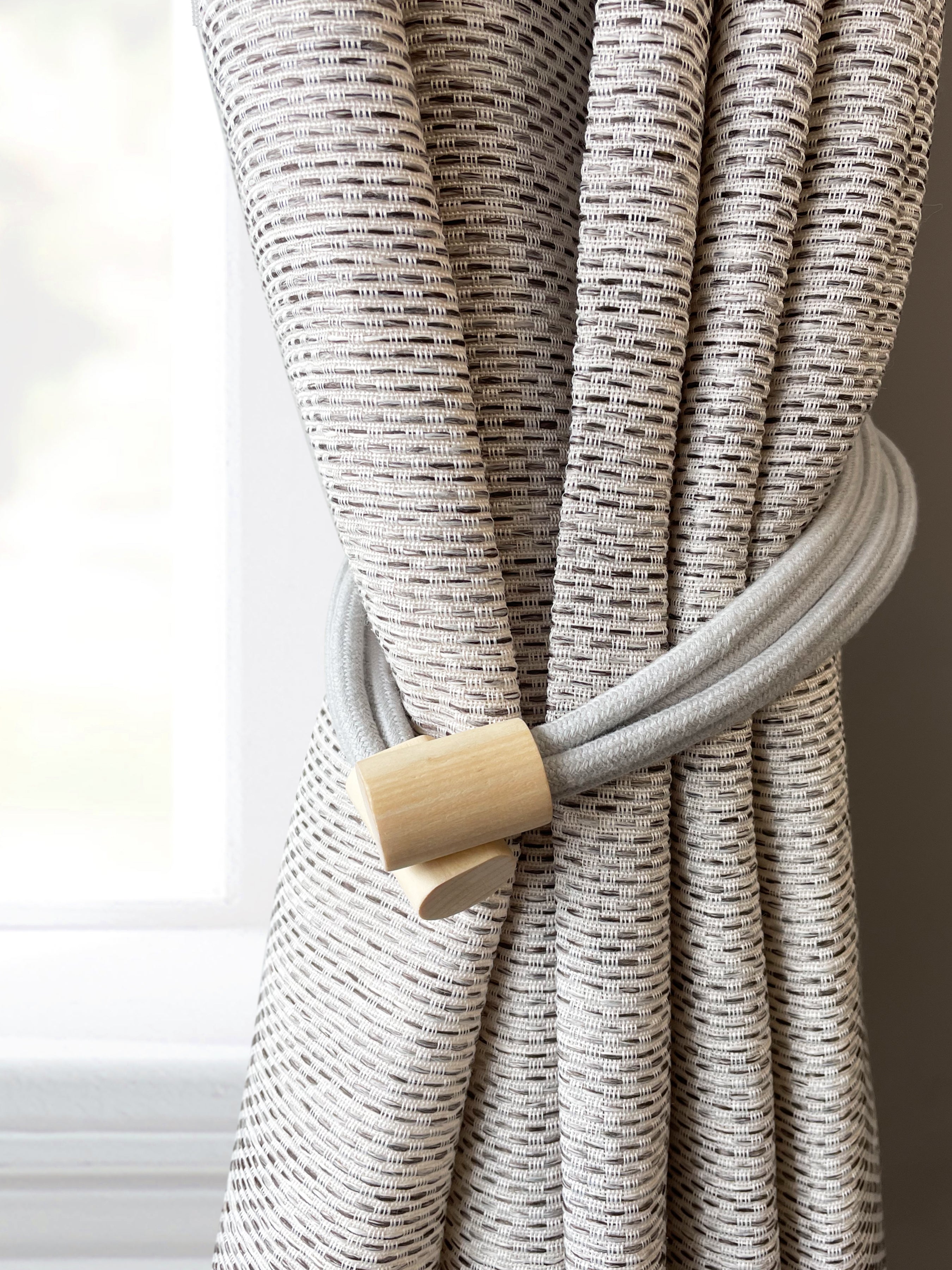These classic magnetic tiebacks feature natural elements of wood and cotton that create a warm and homely feel with a touch of coastal style. These stunning Laura Ashley tiebacks use magnets to create a loop that embraces your curtains so there's no need to drill a hole into the wall. Warning! Not suitable for children under 42 months.