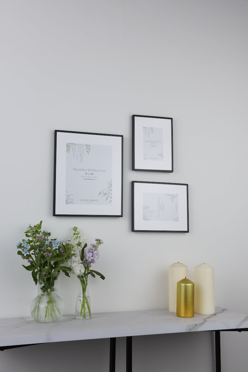 With a matt black metal frames the elegant set of 3 Alisa photo frames from Laura Ashley are perfect for displaying your most treasured images. The understated opulence of this photo frame will enhance any interior.