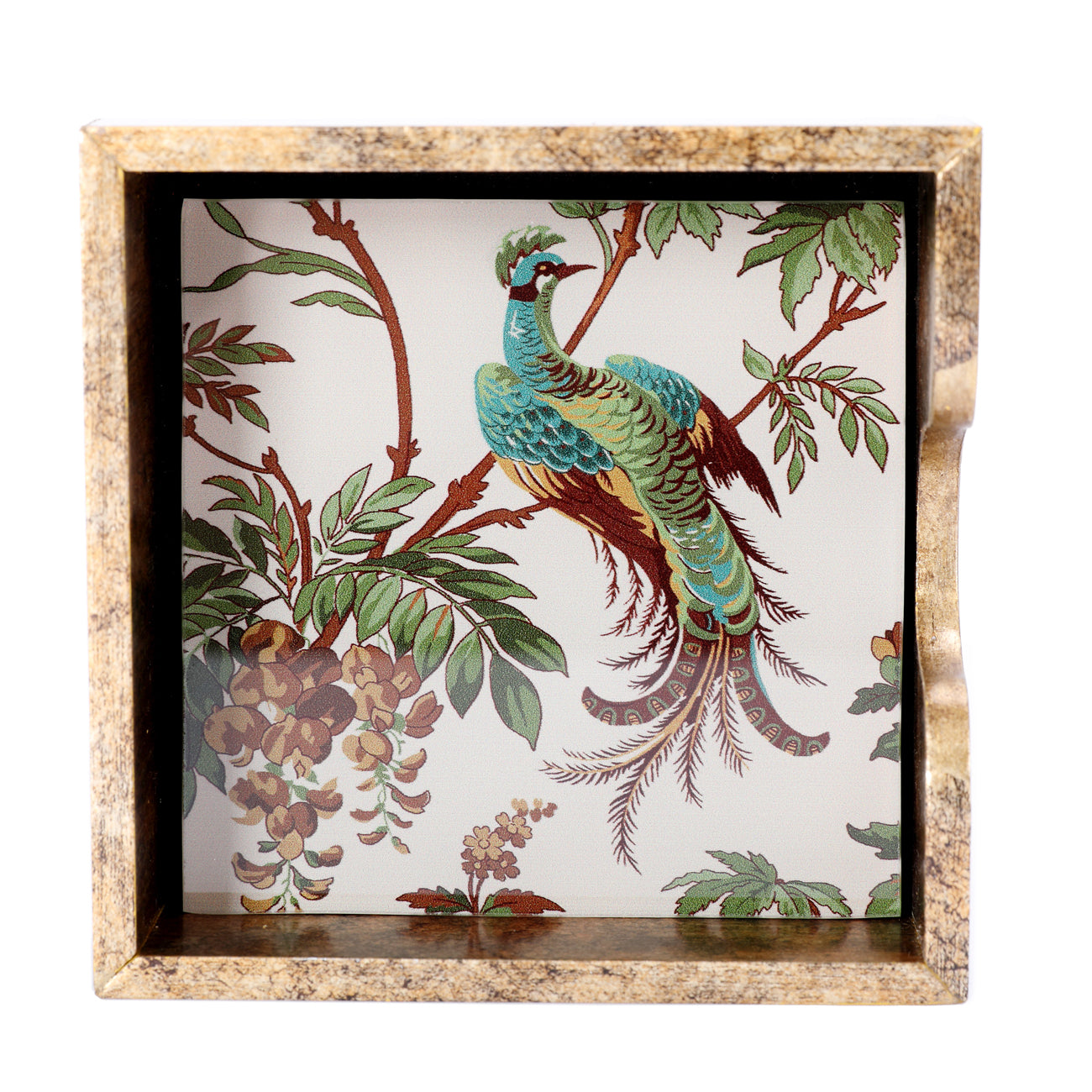 Bring a touch of refinement to your table with this set of four Laura Ashley glass coasters, beautifully framed in antique gold and featuring the intricate Attleton print. Undeniably elegant, Attleton is a gorgeous design featuring exotic birds amongst foliage and delicate florals. Held in the Laura Ashley archive, this charming and romantic design is perfect for interiors that exude elegance and evokes the beauty of nature with a timeless, sophisticated charm. A stylish yet practical addition to your entertaining essentials. Dimensions: 11.7 x 11.7 x 3.5cm