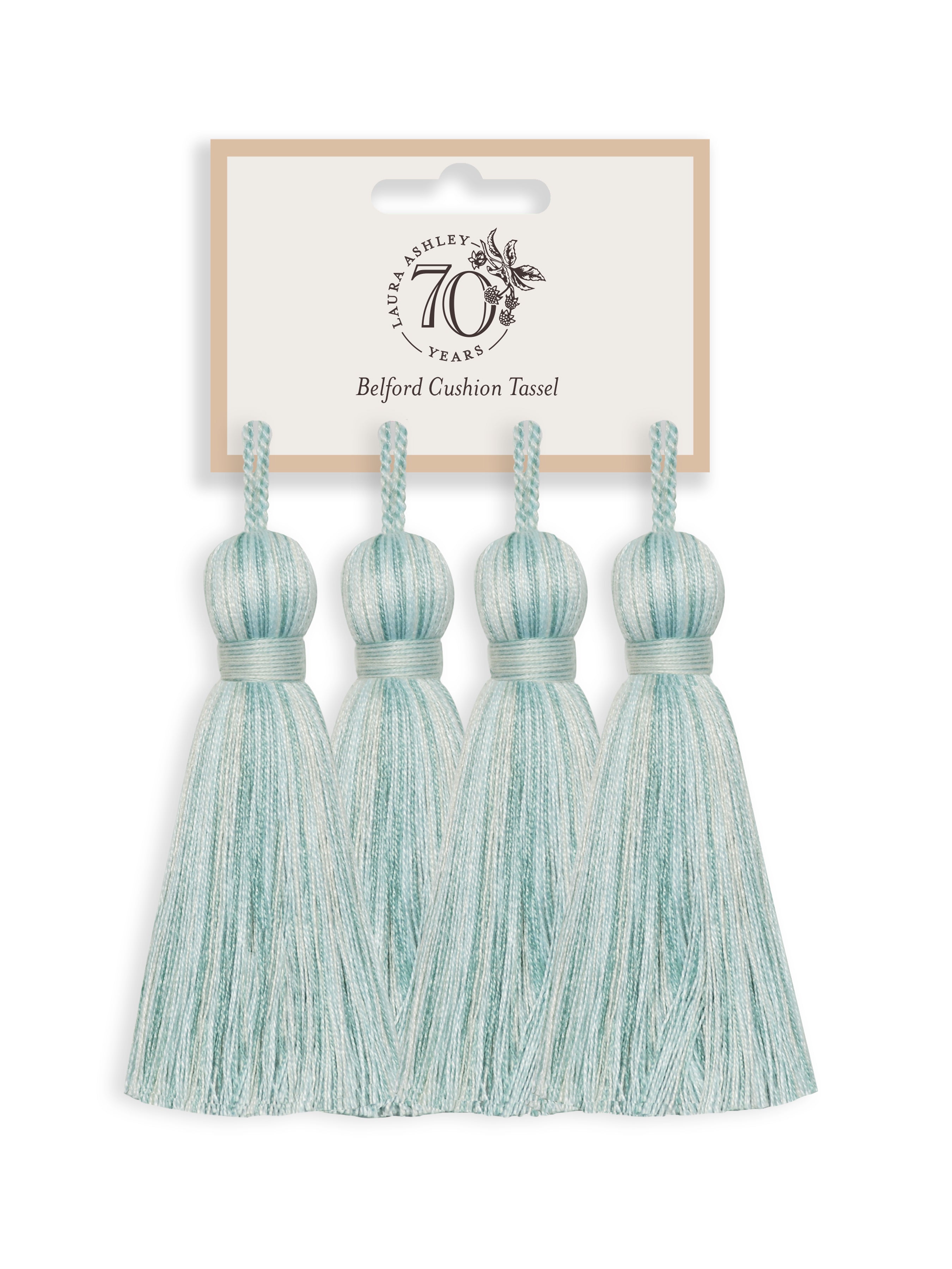 Decorate the corners of your handmade Laura Ashley Cushions, with the elegant, Belford cushion tassels. Sold in packs of 4, these stylish tassels have been designed to celebrate 70 years of Laura Ashley and co-ordinate beautifully with other trimmings, fabrics, and wallpaper from the premium, Anniversary Collection