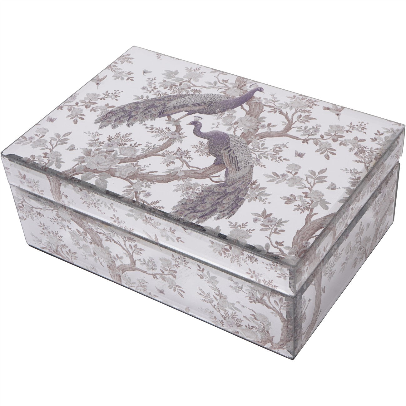 Add elegance to your dressing table with the Laura Ashley Smoked Belvedere Mirror Jewellery Box. Featuring the ornate Belvedere print of peacocks and delicate florals, its smoked mirror finish exudes timeless sophistication. Plush-lined compartments provide safe, stylish storage for your jewellery, blending glamour with practicality.