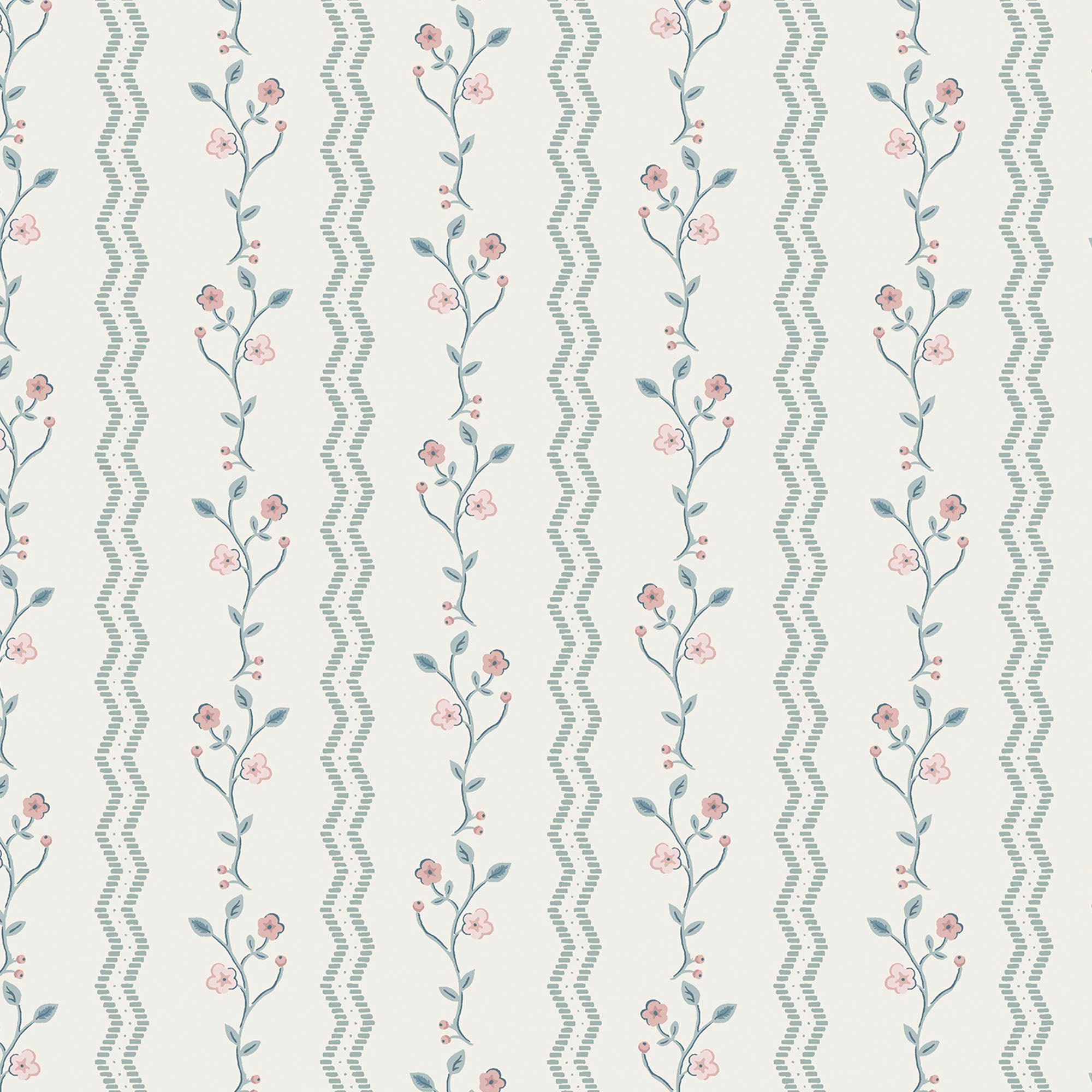 | Blencow Stripe features a beautiful vertical trailing design with carnations, potentilla flowers and berries. |