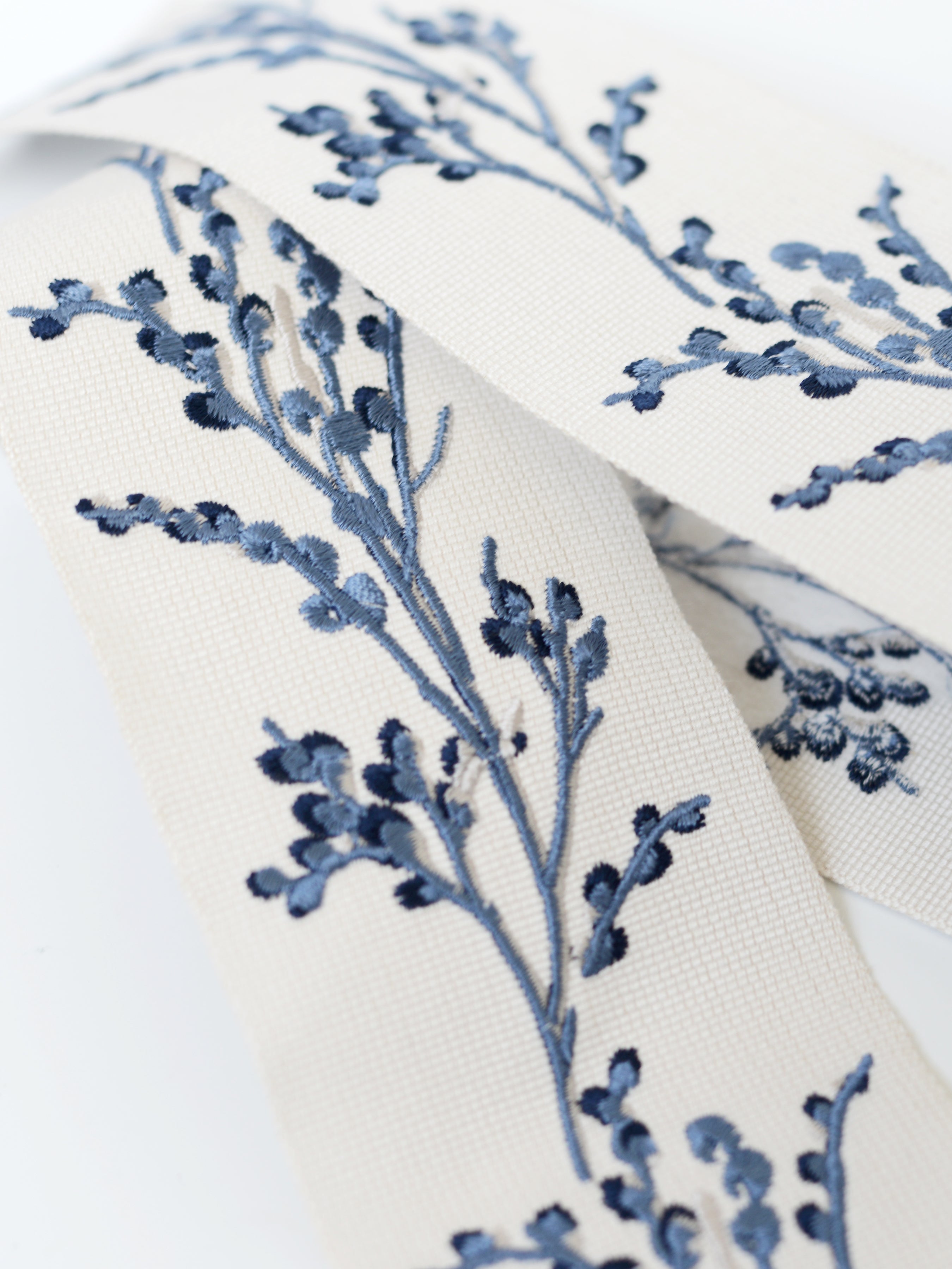 Pussy Willow print is a timeless and original Laura Ashley design, that continues to captivate admirers today. Available in an array of forms, including fabric, wallpaper, bedding, and now trimming, this iconic print perfectly encapsulates the essence of early spring with its stunning willow blooms that infuse any home décor with a touch of fresh elegance.