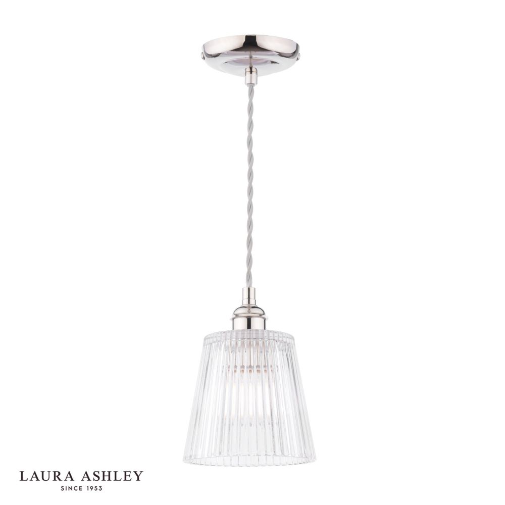 The Laura Ashley Callaghan 1 Light Pendant showcases a polished nickel finish, exuding timeless elegance. Its ribbed glass shade adds an intriguing textural contrast, making it a perfect focal point in any living room, bedroom, or kitchen. With an adjustable height, you can easily achieve a customised look to suit your space. For a cohesive, stylish look, pair it with other pieces from the Laura Ashley Callaghan lighting collection.