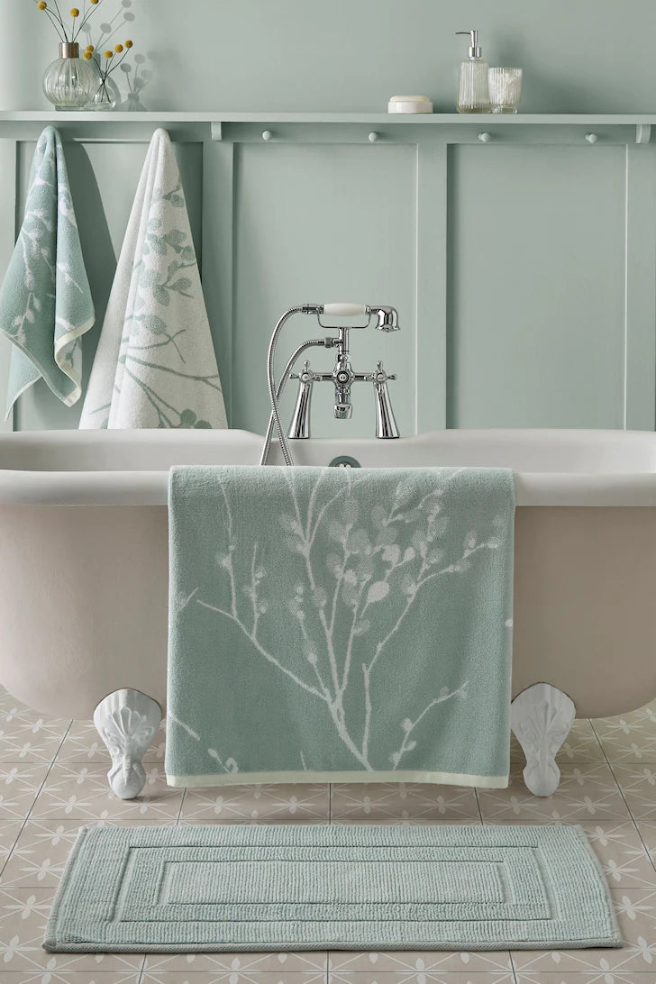 A classic Laura Ashley floral design reminiscent of the first days of early spring, this clean and fresh Pussy Willow sprig design brings a touch of the outside in creating a warm and serene living space. Made from pure cotton jacquard, these soft luxurious towels add the perfect finish for a classically elegant bathroom.