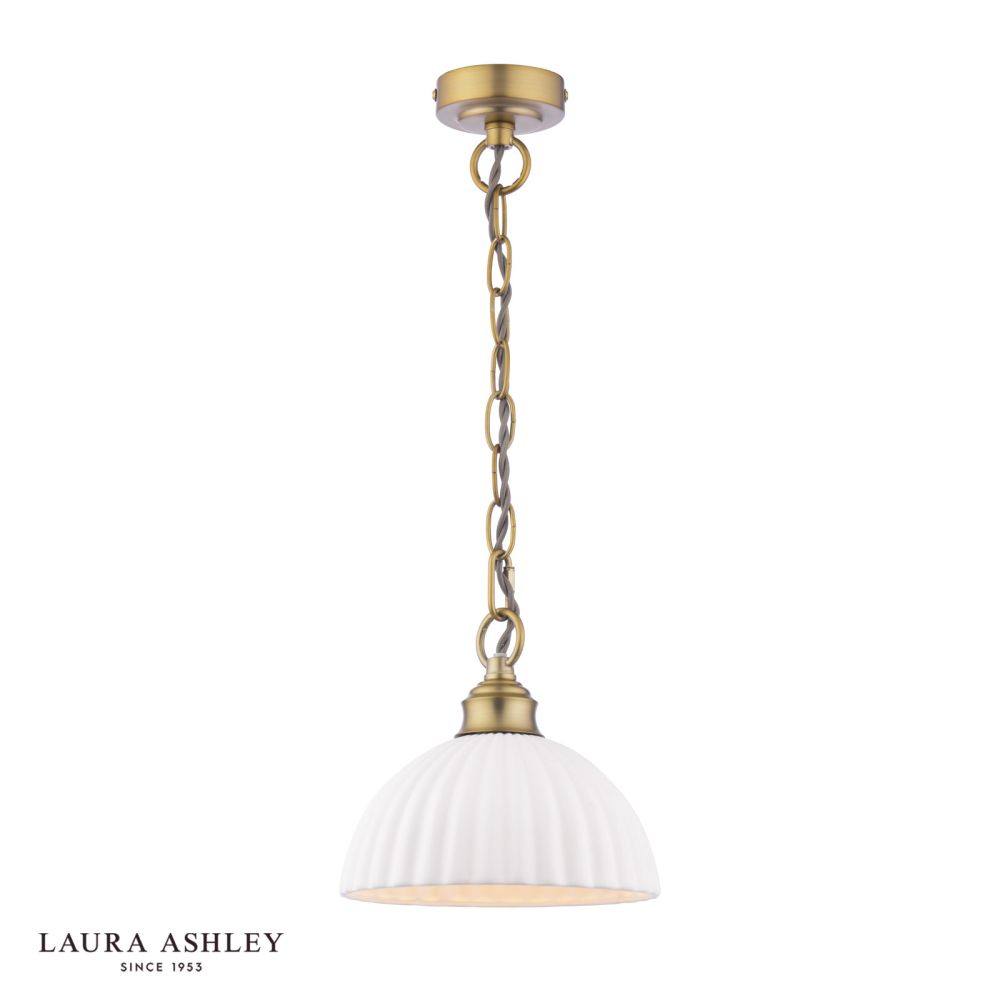 Elevate the style of any room with the Laura Ashley Durford 1 Light Ceiling Light. This timeless, vintage-inspired pendant features a matte antique brass finish that radiates warmth and sophistication. Whether suspended over your living room, bedroom, or kitchen, its adjustable height allows you to customise the ambience to suit your needs.