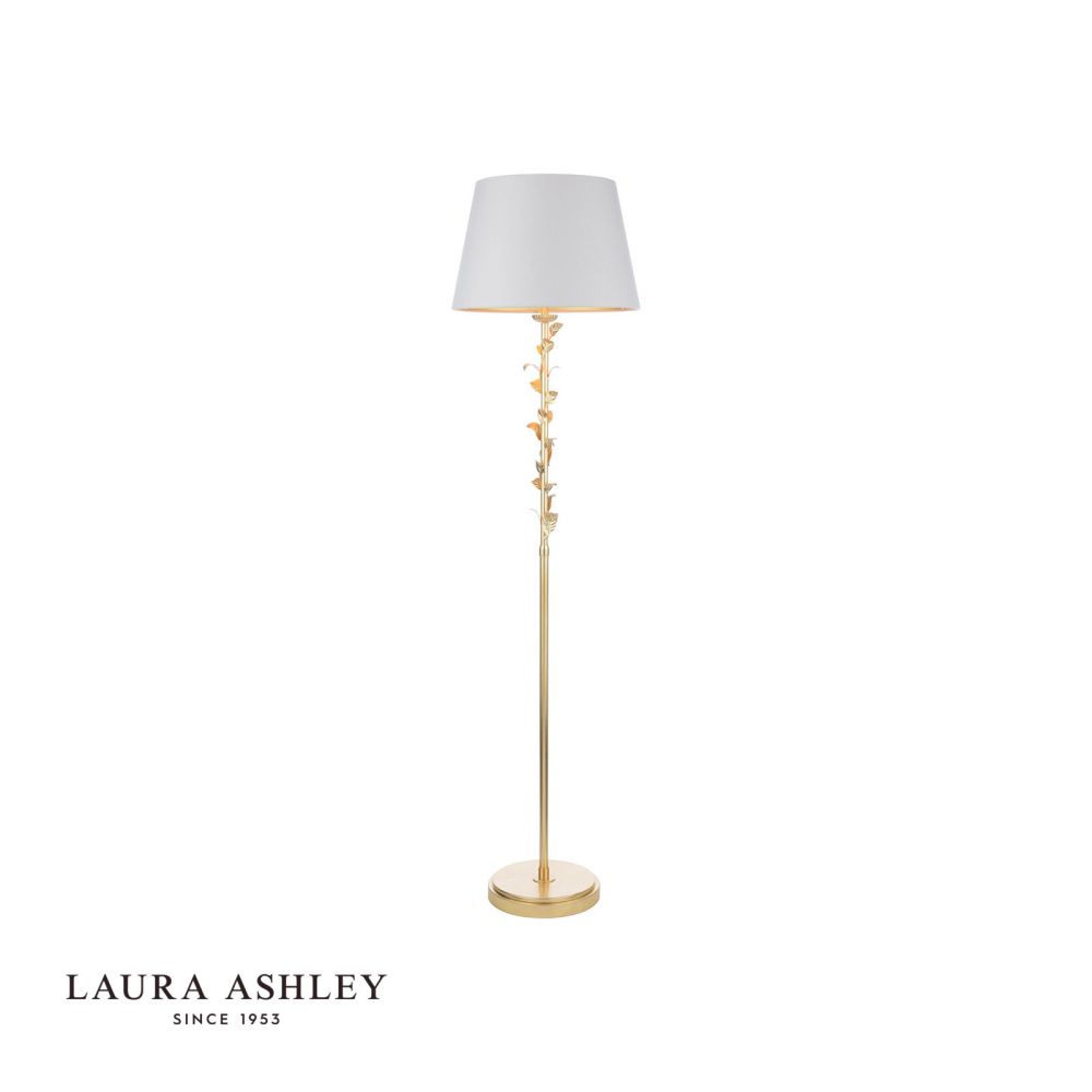 Handcrafted in gold leaf and paired with a cream shade featuring a gold reflective inner lining, this floor lamp is truly a statement piece. Its elegant design adds a touch of style to any room.