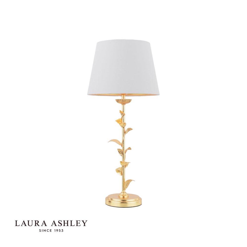 The Halton Table Lamp by Laura Ashley will create an on-trend artisan statement in your home. This striking table lamp features a floral effect finished in gold leaf. The lampshade is made in an cream cotton with a gold relective inner in a tapered drum shape.