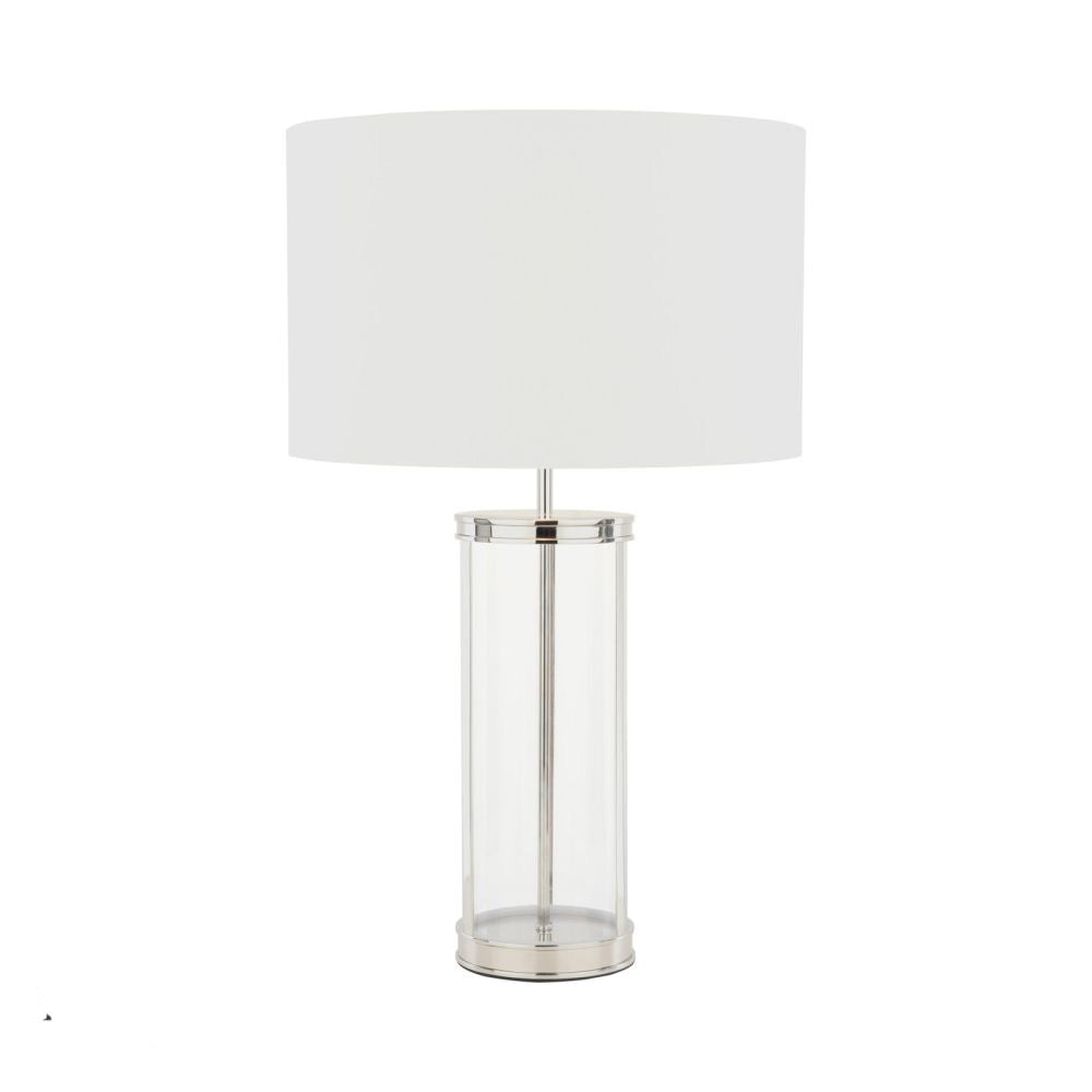 Elevate your home's ambiance with the Laura Ashley Harrington Large Table Lamp in polished nickel. This exquisite piece combines classic sophistication with modern design, making it the perfect addition to any room in your home. This lamp is designed to provide a warm and inviting glow, creating a cozy atmosphere in any room, and is a great addition to reading nooks, bedside tables, or as an accent piece in your living room. This Modern Table Lamp comes with a shade with a metallic inner and an inline switch.