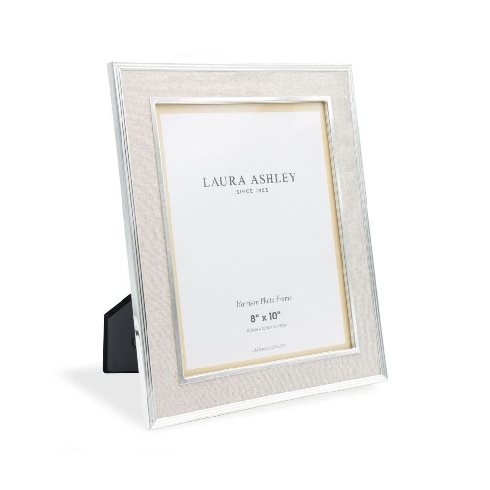 With a silver-plated metal frame faced with natural linen fabric and raised beading, the elegant Harrison photograph frame from Laura Ashley is perfect for displaying your most treasured image. The understated opulence of this silver and fine linen photo frame will enhance any interior. Please note, the size refers to the size of the photo within the frame, which usually allows for an overlap of approximately 5mm.
