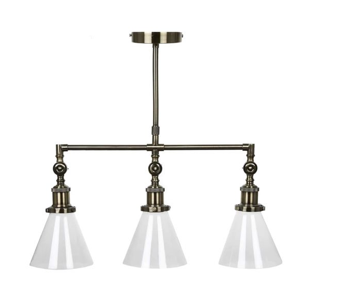 Our Isaac 3 light bar pendant in antique brass fits effortlessly into kitchens and dens. Bold lines and angular shapes lend a sophisticated, contemporary touch that looks fantastic against bare brickwork.