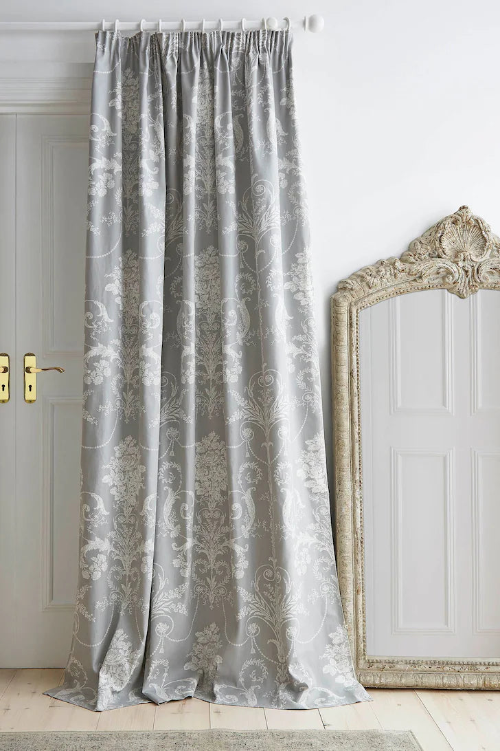 This Laura Ashley readymade door curtain. Made from beautiful Josette fabric, this timeless curtain has a pencil pleat heading finished in the classic Steel