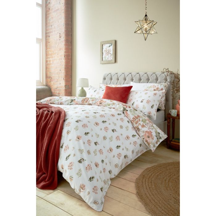 Fill your bedroom with an Autumnal inspired colour palette of blooming watercolour flowers, with this contemporary and charismatic cotton sateen bed set. The Lewcombe bedding features a delicate, co-ordinating reverse of painterly sprigs and leaves.