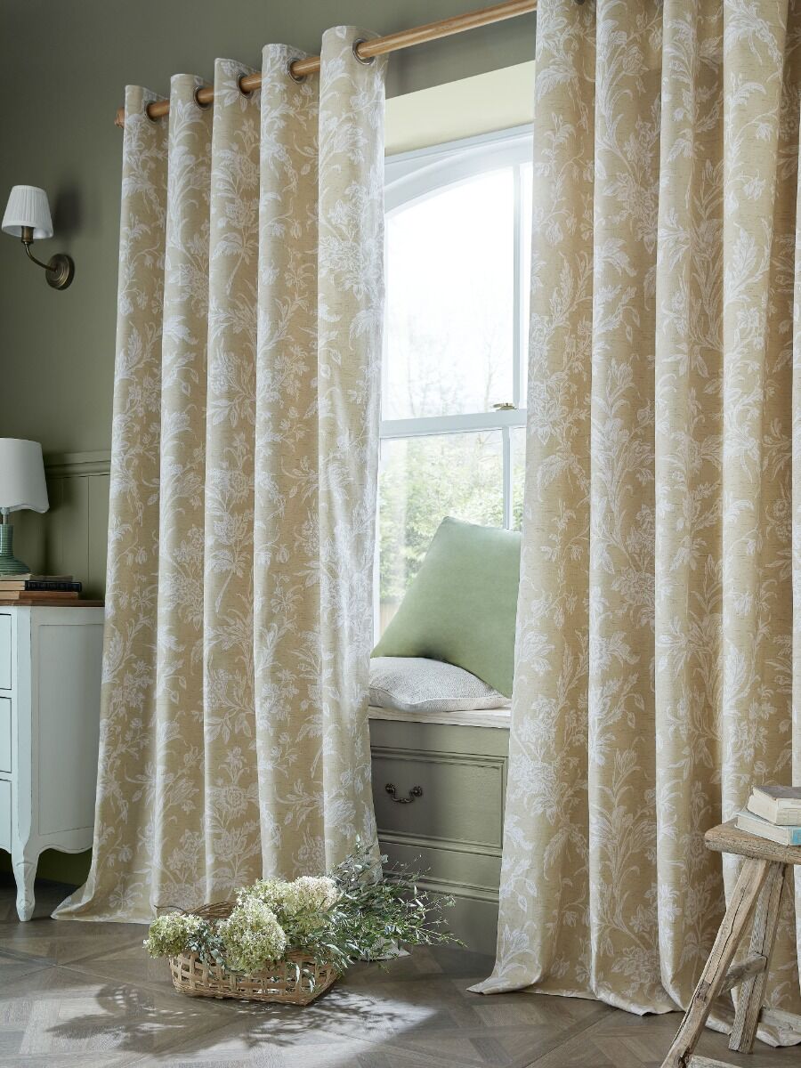 The Laura Ashley Lloyd lined eyelet curtain combines classic elegance with modern design. Featuring a subtle yet striking floral pattern, the soft tones of the fabric create a warm, inviting atmosphere. The delicate design and timeless colours make the Lloyd curtain an ideal choice for enhancing a variety of interiors, from cosy bedrooms to stylish living rooms, adding a refined charm to your home.