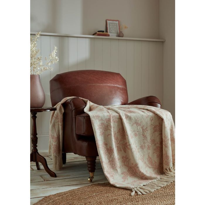 Timelessly elegant, the Lloyd print is an intricate floral trail design with romantically curving floral stems of tulips, primulas and potentillas. Delicately printed onto cotton in a plaster pink with attractive slub detailing, this beautiful throw is a stylish addition to your home. Composition 100% Cotton..